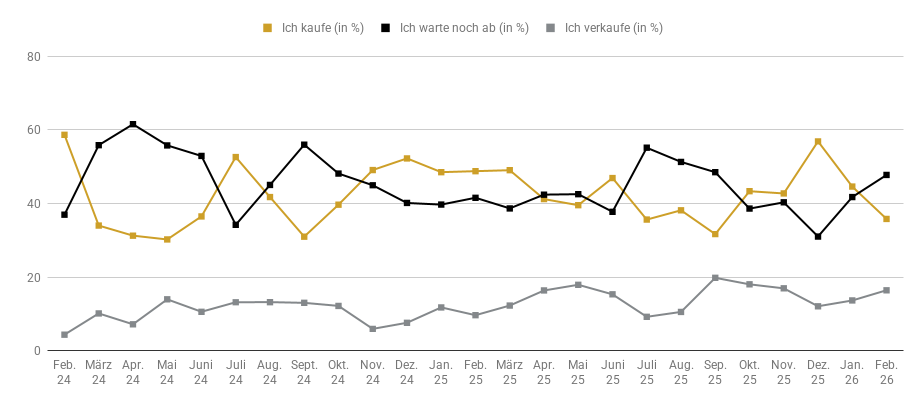 An der von pro aurum im Internet durchgeführten Edelmetall-Stimmungsumfrage haben sich im Februar 702 Personen (Januar: 1.053) beteiligt. Dabei war erneut eine nachlassende Kaufbereitschaft registriert worden. Diese hat sich gegenüber dem Vormonat von 44,6 auf 35,8 Prozent reduziert. Von 41,8 auf 47,8 Prozent bergauf ging es indes mit dem Anteil derer, die eine abwartende Haltung einnehmen. Die Verkaufsbereitschaft legte im Berichtszeitraum ebenfalls zu. Hier gab es einen Zuwachs von 13,6 auf 16,4 Prozent zu beobachten.